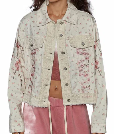 Lacy Floral Button Down Jacket In Cream/ Pink In Multi