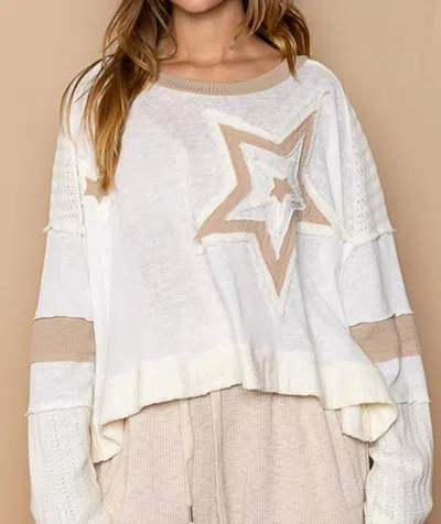 POL Stars Pullover Top In Beige In Multi