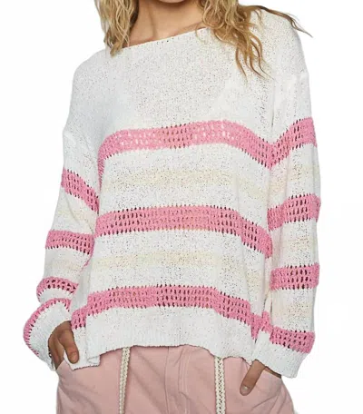 POL Stripe Lightweight Sweater Top In Ivory & Pink In Multi