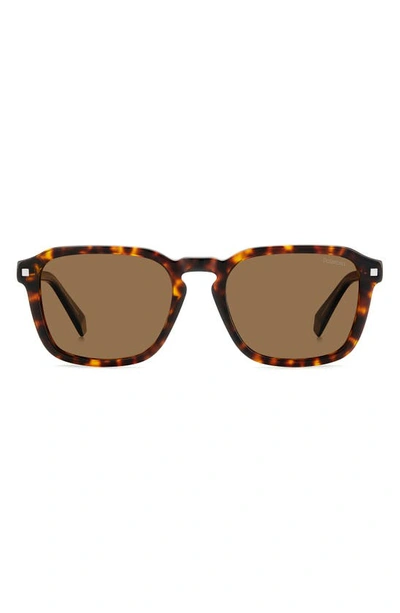 POLAROID 53mm Polarized Rectangular Sunglasses In Havana/ Bronze Polarized