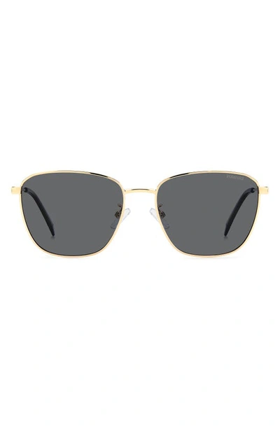 POLAROID 56mm Polarized Rectangular Sunglasses In Gold/ Gray Polarized