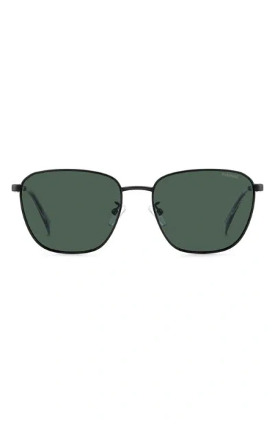 POLAROID 56mm Polarized Rectangular Sunglasses In Matte Black/green Polarized