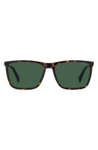 POLAROID 58mm Polarized Rectangular Sunglasses In Green