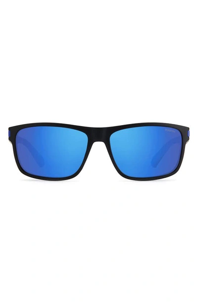 POLAROID 58mm Polarized Rectangular Sunglasses In Matte Black Blue / Blue