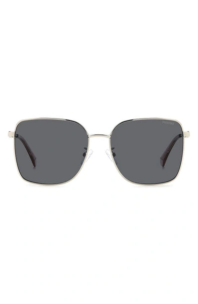 POLAROID 58mm Polarized Rectangular Sunglasses In Palladium/ Gray Polarized
