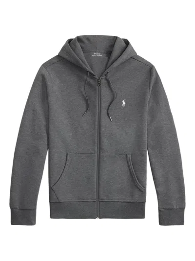 POLO RALPH LAUREN Grey Sweatshirt With Drawstring Hood And Pony Embroidery On The Front In Cotton Blend Man In Gray