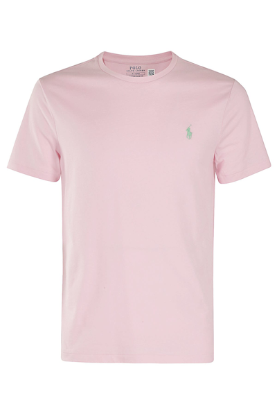 POLO RALPH LAUREN Logo Embroidered Round Neck T-shirt In Carmel Pink