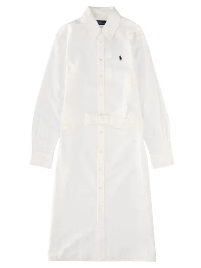 POLO RALPH LAUREN Long Sleeve Dress Belted Waist Detail In White