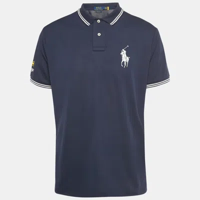 Pre-owned Navy Blue Logo Print Jersey Polo T-shirt L