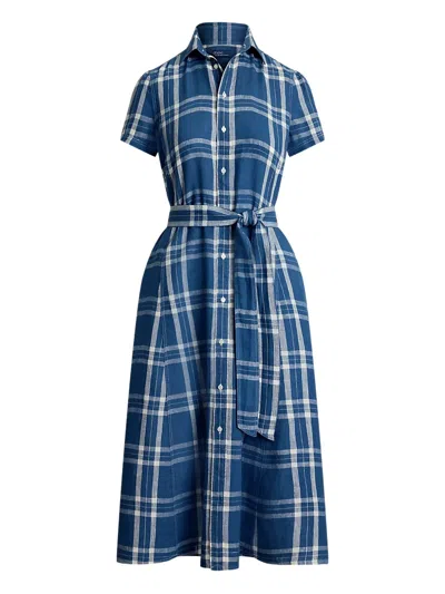 POLO RALPH LAUREN Plaid Linen Shirtdress In Blue