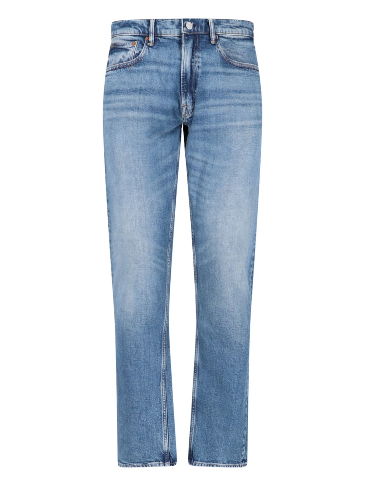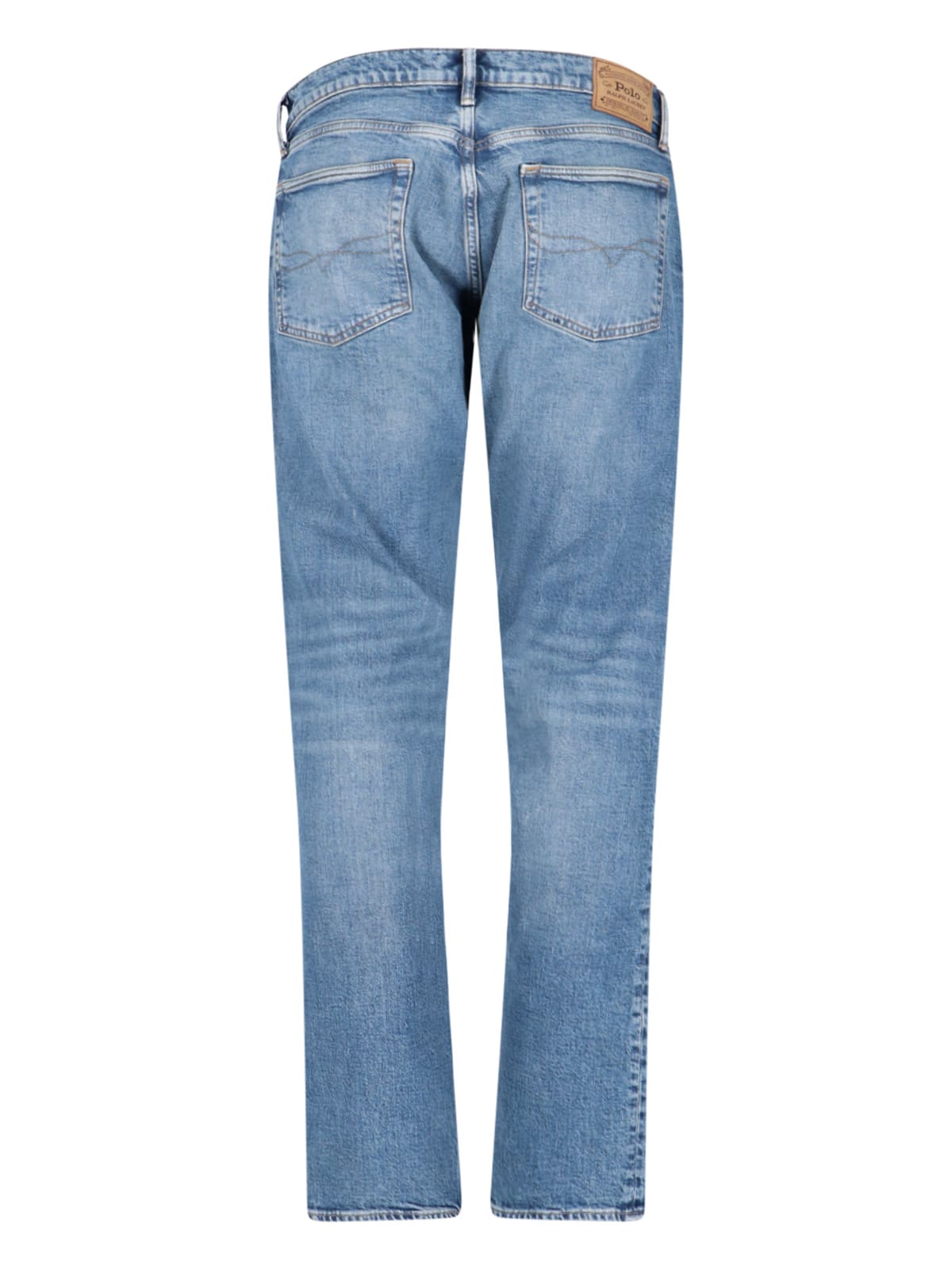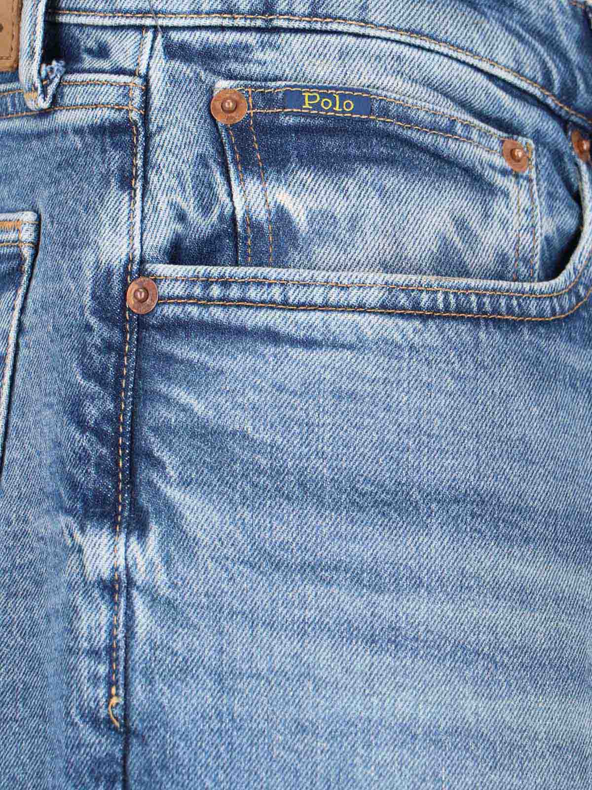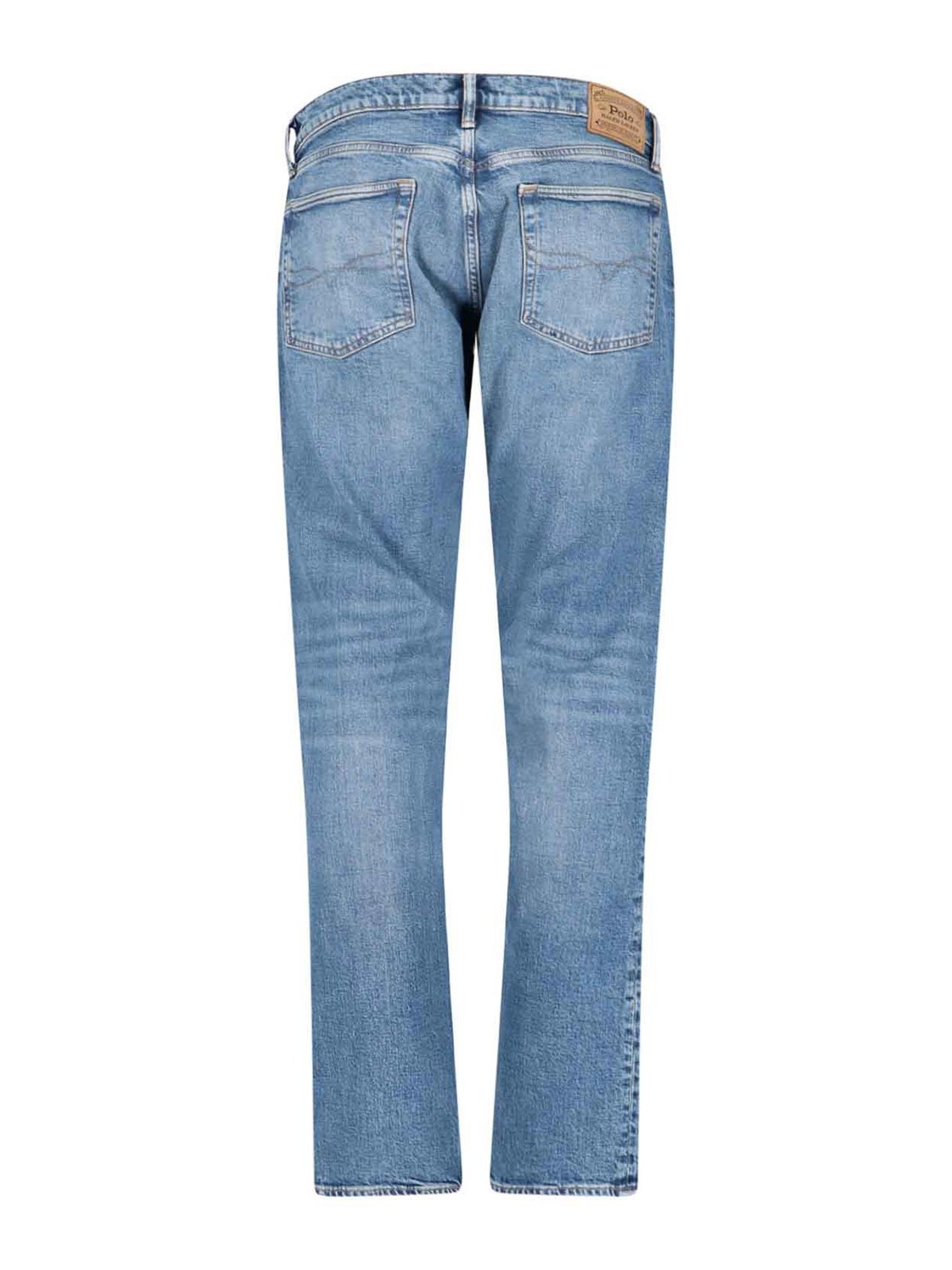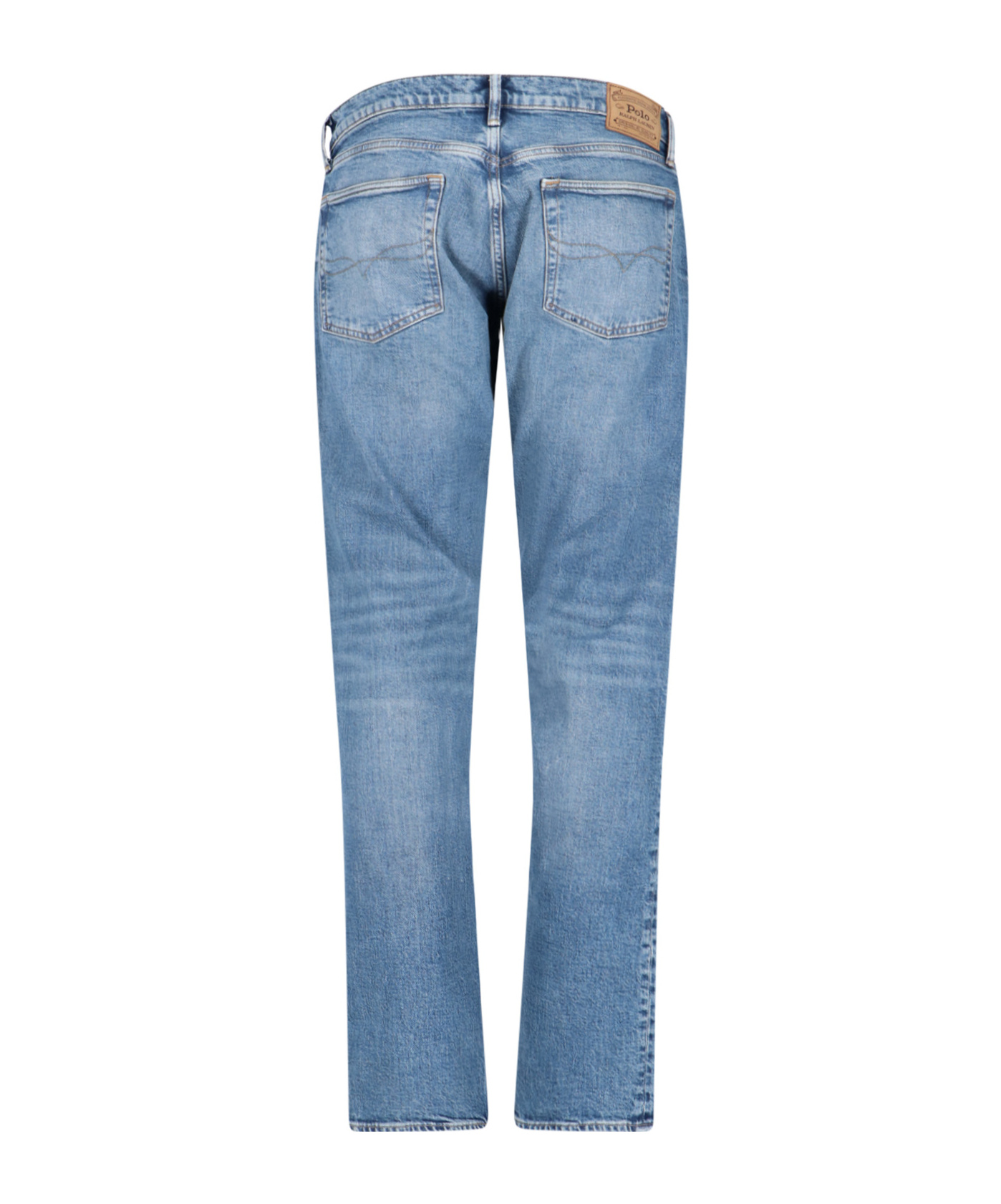Polo Ralph Lauren straight-leg jeans showcase a light wash with gentle fading and whiskering, reflecting a classic vintage style. The design includes five pockets and a zip fly, complemented by a branded leather patch at the back waist for added distinction.- Light wash- Subtle fading and whiskering- Straight-leg fit- Five pockets- Zip fly- Branded leather patch at back waist