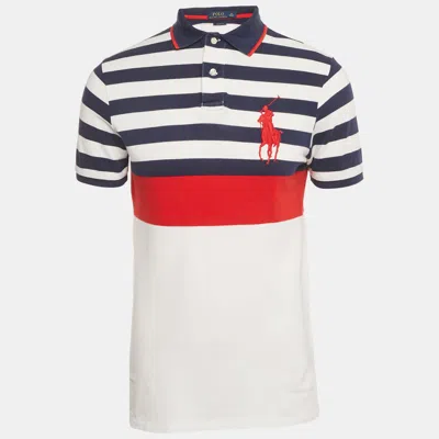 Pre-owned White /red Stripe Logo Embroidered Cotton Polo T-shirt M