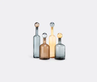 One of POLSPOTTEN's most widely recognised sets, 'Bubbles & Bottles XXL' presents four pieces of hand-worked, mouth blown multicoloured glass bottles. Offering maximum impact thanks to their varying shapes, sizes and application of colour, the collection can be mixed with pieces from other sets for a bespoke display.