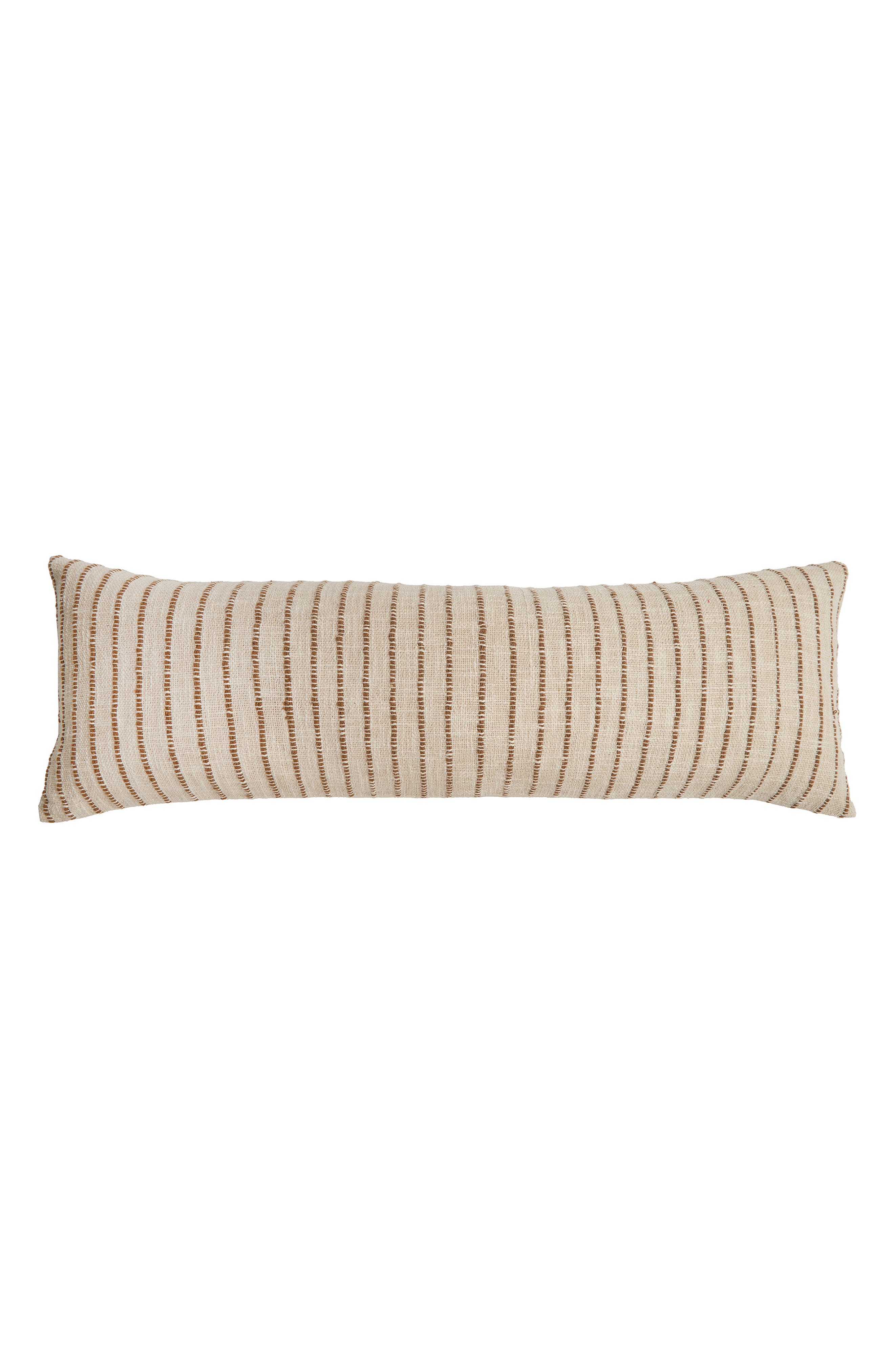 Tactile stripes add to the depth and dimension of this feather-plumped accent pillow that brings a bit of rustic texture to your inviting living space. 14" x 40" Zip closure Removable insert with feather/down fill 100% cotton Machine wash, dry flat Imported