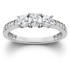 This very high quality women's engagement ring features 11 genuine ex3 lab grown diamonds. The diamonds are prong set in solid 10k white gold.