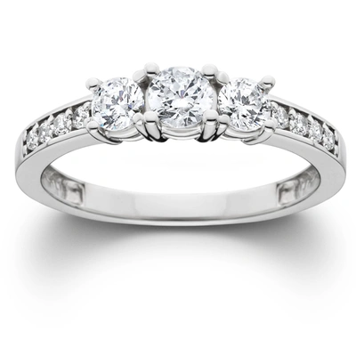 POMPEII3 1ct Diamond Ex3 Lab Grown Three Stone Engagement Ring 10k White Gold In Multi