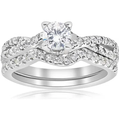 1ct Infinity Diamond Engagement Wedding Ring Set 14k White Gold In Silver