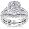 Stunning and classic women's engagement ring features a 3/4 round cut genuine diamond. The side stones are prong set and main top is prong set. The arrangement of the center gives this a big look and has a lot of wow factor. Matching wedding ring is included and all diamonds are set in solid 10k gold.