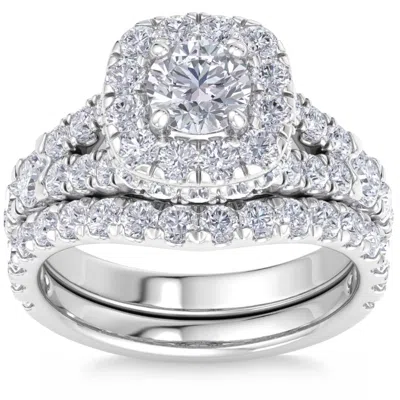 POMPEII3 3 1/2ct Cushion Halo Split Ring Diamond Engagement Set In White Yellow Rose Gold In Multi