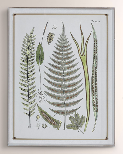 The artwork features a giclee print mounted under a shadow box. Attached to a linen-wrapped interior panel, the artwork is finished with a nickel nail head in each corner. Hand embellished with gold Handcrafted of acrylic, paper, and linen Hangs vertically Approx. 20"W x 2.5"D x 26"T Includes hanging hardware Hanging method: d-rings Wipe clean Made in USA from imported materials Weight, 10.0lbs Boxed weight, approximately 13.0 lbs
