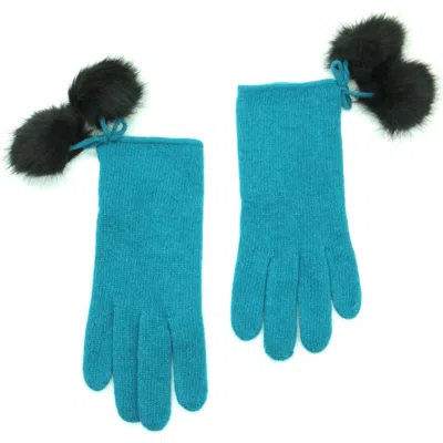 PORTOLANO Pompom Wool Blend Gloves In Blue