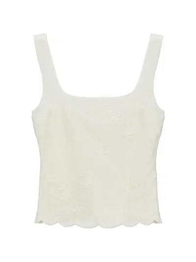 pearl white mesh texture floral embroidery square neck sleeveless scalloped hem rear zip fastening