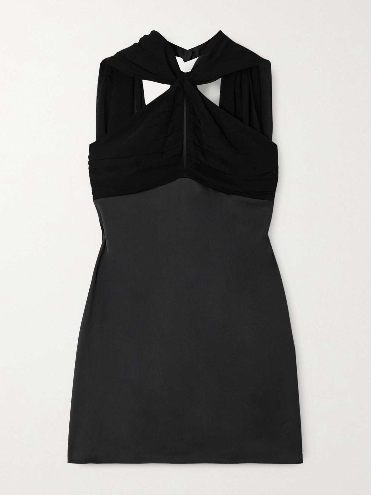 Solene Ruched Chiffon And Satin-crepe Mini Dress In Black