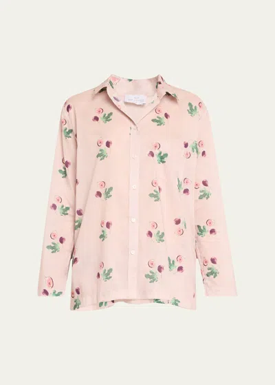 POUR LES FEMMES Botanical-print Cotton Pajama Set In Figs