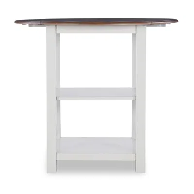 Infuse a farmhouse look into your home with this three-piece counter-height dining set featuring two-tone finish and classic design. Combining wire brushed oak and silver birch finishes creates an eye-catching contrast while also complementing any color scheme. Ideal for a variety of styles, this set also features a lower table shelf to keep linens or utensils conveniently within reach.