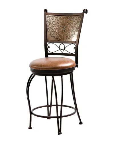 Color/Finish: Brown The Details Make The Difference With This Elegant Counter Stool. A Stamped Back Enhances The Look While Curved Front And Angled Back Legs Make The Design Even Livelier. The Cushioned Faux Leather Seat Is Attractive And Comfortable. The Muted Copper Color Stamp Blends With The Bronze Finish. The Metal Stool, With A 24 High Seat, Is A Lovely Complement To A Counter Or Counter Height Table Around 34 To 36 High, And Acts As A Stylish Accent Anywhere You Want To Place It. Metal And Foam Assembly Required Wipe Clean Imported