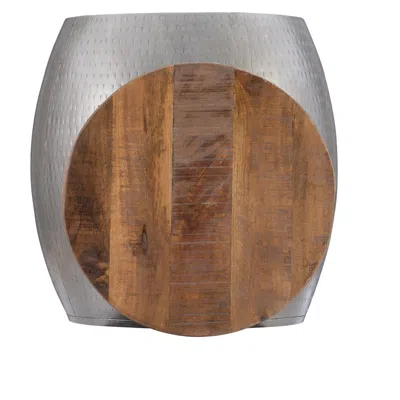 POWELL Royce Drum Side Table With Storage Pewter In Multi