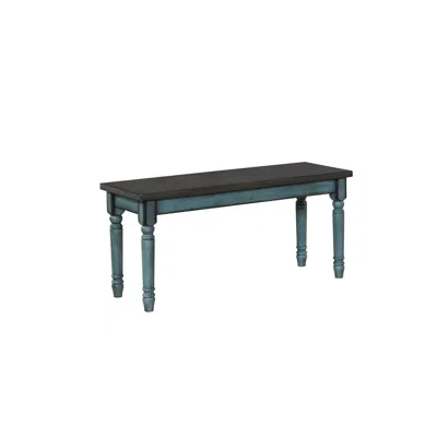 With a beautiful and calming blue finish, the Willow Bench will make a statement in your home. A burnished smoke finish on the seat provides a nice contrast with the teal blue dry brushed glaze finish and wormhole distressing on the base. The attention to detail in the design features of turned legs and chiseled edging make this set stand out. The bench adds extra seating and is a perfect match to the table and chairs, which are also available to complete the set. Some assembly required.