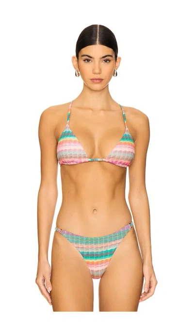 PQ Chain Triangle Bikini Top in Teal. - size S (also in L, M) PQ Chain Triangle Bikini Top in Teal. - size S (also in L, M) Self: 78% polyamide 22% elastane Lining: 84% polyamide 16% elastane. Made in Colombia. Hand wash. Removable padded cups. Back tie closure. Adjustable sliding fit. Stretch jersey fabric. Item not sold as set. PILY-WX795. AMY-797R. PQ Swim is a cabana chic swim and resort wear line inspired by women who want to feel confident in what they wear. PQ encompasses everything a woman needs for a stylish getaway from sun up to sun down, offering supportive fits and flattering cuts. The alluring designs are inspired by life's travels... always within reach of an exotic beach and the sun's glowing heat. Just like you, PQ cares to help preserve the future of our planet. As a company, they are focused on using an environmentally-friendly process and believe the water is our home - and that we need to be part of the solution for our oceans.