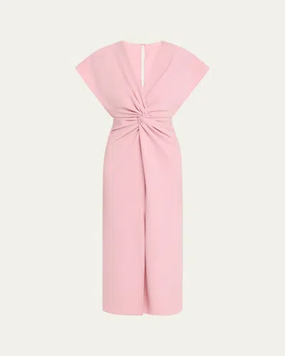 PRABAL GURUNG Front Twist V-neck Midi Dress In Sakura Pink