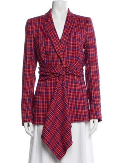 Prabal Gurung Blazer Red Plaid Print Pleated Accents & Pointed Collar Button Closure Fit: Jackets by Prabal Gurung typically fit true to size. | Prabal Gurung Plaid Print Blazer in Red, Women's US 6 | M