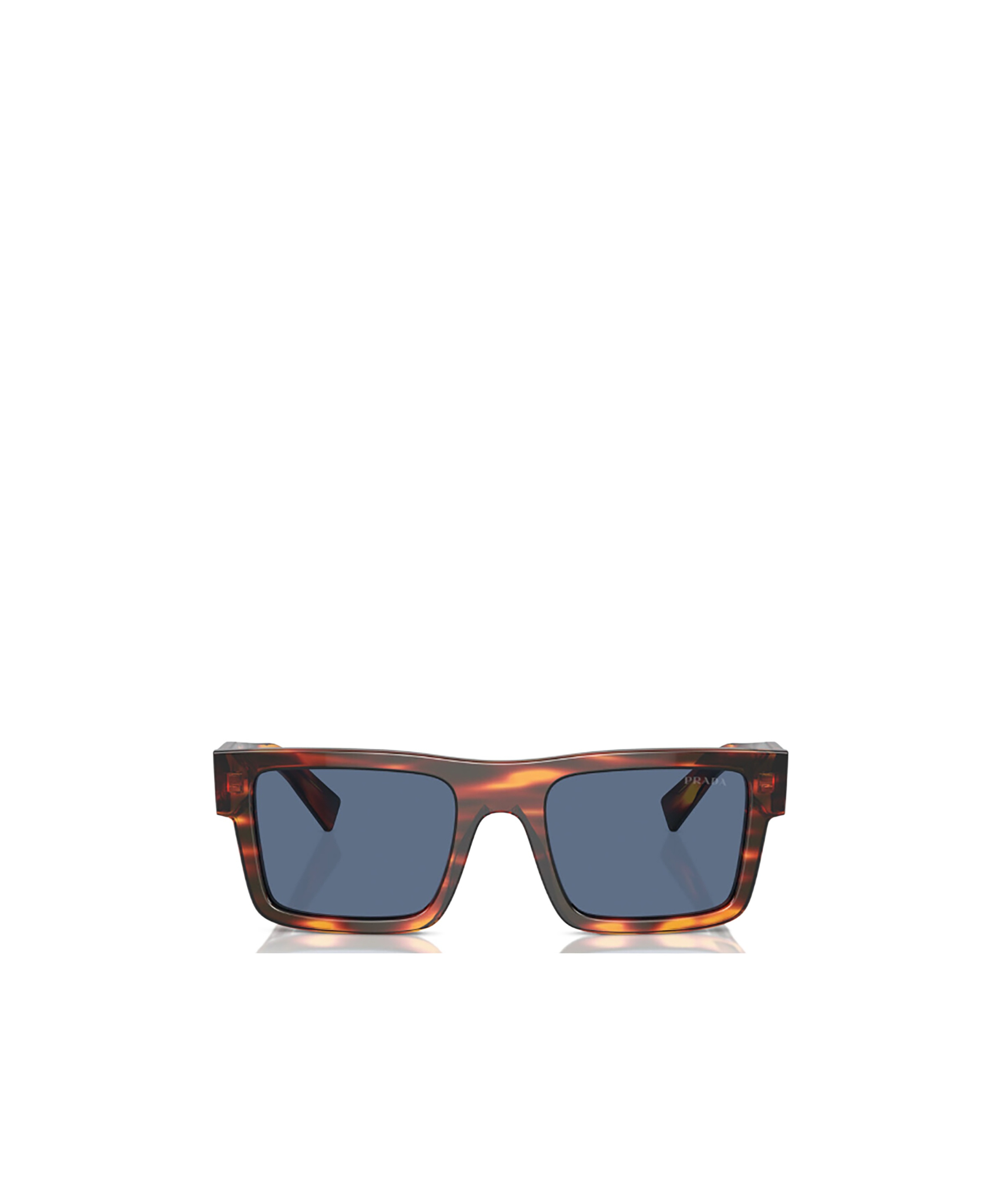 Prada presents these striking rectangular sunglasses, characterized by a tortoiseshell acetate pattern that offers an eye-catching aesthetic. Dark lenses contrast beautifully against the warm tones of the frame, exuding a sense of luxury and sophistication. The arms also bear the signature tortoiseshell design and are adorned with a logo detail, making them a statement accessory for the discerning gentleman's wardrobe. - Brand - Prada - Product Type - Sunglasses - Material - Acetato - Color - Brown Calibre Size - 52 mm