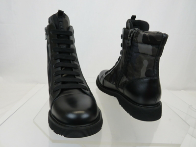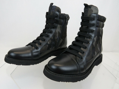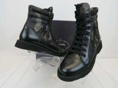 NIB 0T0782 CAMOUFLAGE GRAY LEATHER CAP TOE LACE UP LOGO COMBAT BOOTS By PRADA 100% AUTHENTIC,GUARANTEED!!! Color: Nero + Fumo (print on the box) Leather Upper Nylon on the both sides Zipper on the side with "Prada" logo on the Metal closure Lace-Up front silhouette Tapered Round Cap Toe Mesh Lining Prada logo on the Tongue "PRADA" logo Leather Insole Rubber Outsole Boot Shaft 5-3/4" Tall (Calf Included) PRADA's size 36 - Print On The Shoes and box (can be converted to US 6, length of sole = 9-1/2" ) Original Price $ 550 NOTE !!! These shoes came from a famous store in its original box. They are new but they are in-store item and it’s possible that somebody tried them on inside the store. This could cause tiny exterior imperfections or marks on outsoles that are invisible when you wear them. They are new, in great condition, but we are stating them as a “new in box - in store item”. NOTE!!!!! International Buyers: Import duties, taxes and charges are NOT included in the item price or shipping cost.