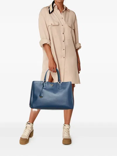 Leather||Fair|Timeless and practical, this pre-owned Prada Gardener’s tote is crafted from durable blue Saffiano Lux leather, offering ample space for daily necessities.