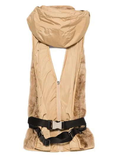 circa 1990s beige lamb fur hooded design front zip closure two zip-fastening pockets belted waist Condition: EXCELLENT. This previously owned item is in near-perfect condition with no signs of damage or use.