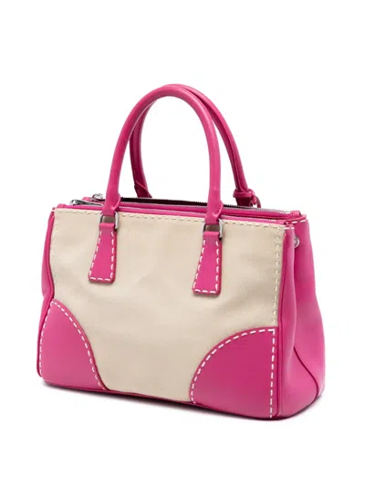 Pre-owned 2000-2025 Small Canvas And City Calf Hand Stitched Galleria Double Zip Satchel In Brown