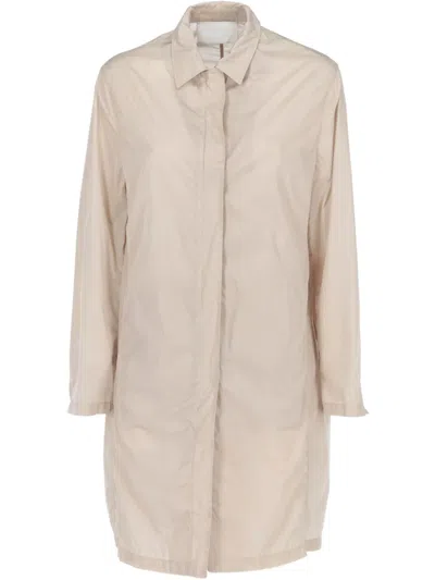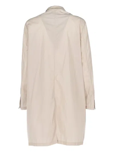 circa 2000s light beige concealed front fastening long sleeves two side inset pockets classic collar rear slit