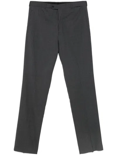 circa 2000s slate grey virgin wool mélange effect tailored cut off-centre front button fastening belt loops two side welt pockets pressed crease two rear welt pockets tapered leg Purchasing this item continues its narrative and reduces the environmental impact by avoiding the use of new resources needed to make the product from scratch, such as water, materials and electricity, and avoiding additional manufacturing impact. Learn more about what makes a product Conscious on our Conscious Criteria page