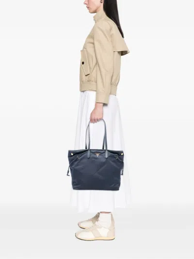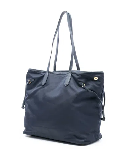 Pre-owned 2013-2025 Saffiano Trimmed Tessuto Open Convertible Tote Satchel In Blue