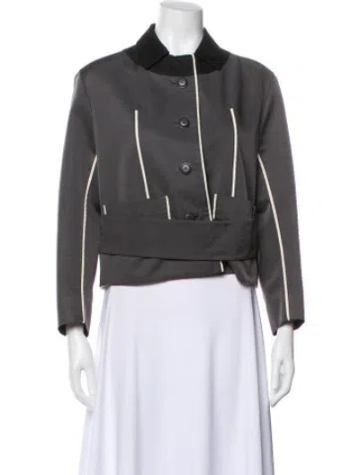 Prada Wool Biker Jacket From the 2015 Collection by Miuccia Prada Grey Pointed Collar Front Pocket & Button Closure Designer Fit: Designed for a slim fit, those with a curvy figure may wish to take one size up. | Prada 2015 Wool Biker Jacket in Grey, Women's US4, IT40 | S