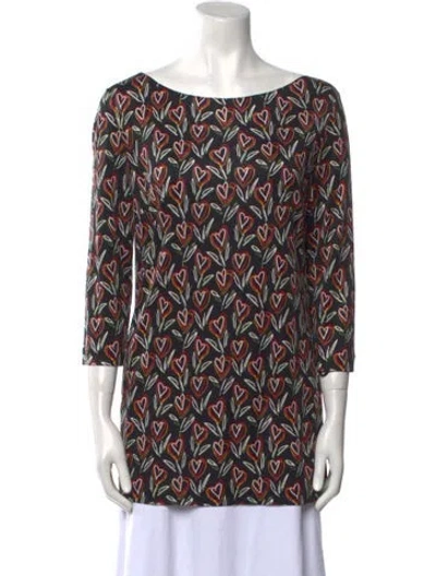 Prada Silk Tunic From the Spring/Summer 2016 Collection by Miuccia Prada Black Printed Three-Quarter Sleeve with Bateau Neckline Designer Fit: Designed for a slim fit, those with a curvy figure may wish to take one size up. | Prada 2016 Silk Tunic in Black, Women's US10, IT46 | L