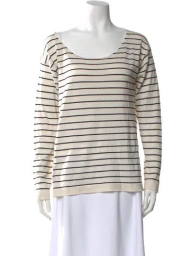 Prada Wool Pullover From the Resort 2016 Collection by Miuccia Prada Neutrals Striped Long Sleeve with Scoop Neck Designer Fit: Sweaters by Prada typically fit true to size. | Prada 2016 Wool Sweater in Neutrals, Women's US6, IT42 | M