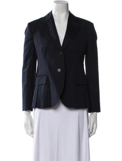 Prada Blazer From the 2019 Collection by Miuccia Prada Blue Pointed Collar Button Closure Designer Fit: Designed for a slim fit, those with a curvy figure may wish to take one size up. | Prada 2019 Blazer in Blue, Women's US4, IT40 | S