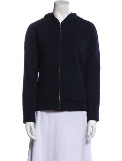 Prada Bomber Jacket From the 2019 Collection by Miuccia Prada Blue With Hood Stand Collar Slit Pockets & Zip Closure Designer Fit: Designed for a slim fit, those with a curvy figure may wish to take one size up. | Prada 2019 Bomber Jacket in Blue, Women's M