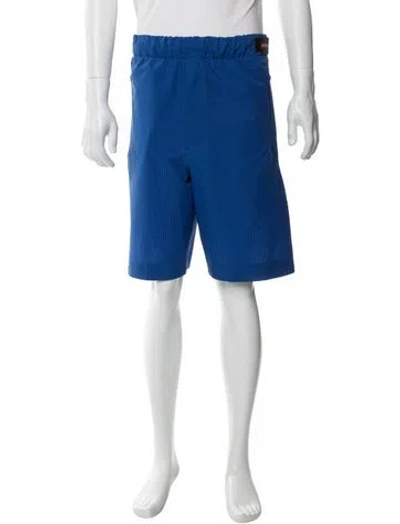 Prada Linea Rossa Flat Front Shorts From the 2019 Collection by Miuccia Prada Blue Striped Zip Pockets Fit: Shorts by Prada typically fit true to size. | Prada 2019 Flat Front Shorts in Blue, Men's M