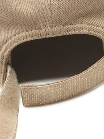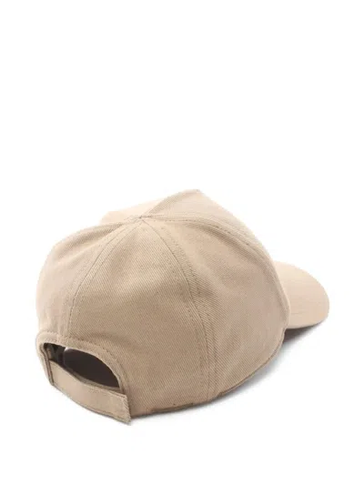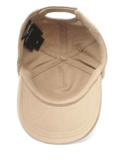 circa 2020s sand beige cotton triangle logo rear touch-strap fastening six-panel construction curved peak unlined Condition: UNWORN. This item is previously owned but remains unworn and in its original condition. However, it does not come with its original tags.